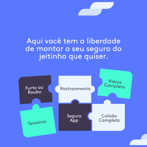 São várias opções: Furto ou Roubo, Colisão, Seguro contra terceiro e Assistência 24h.